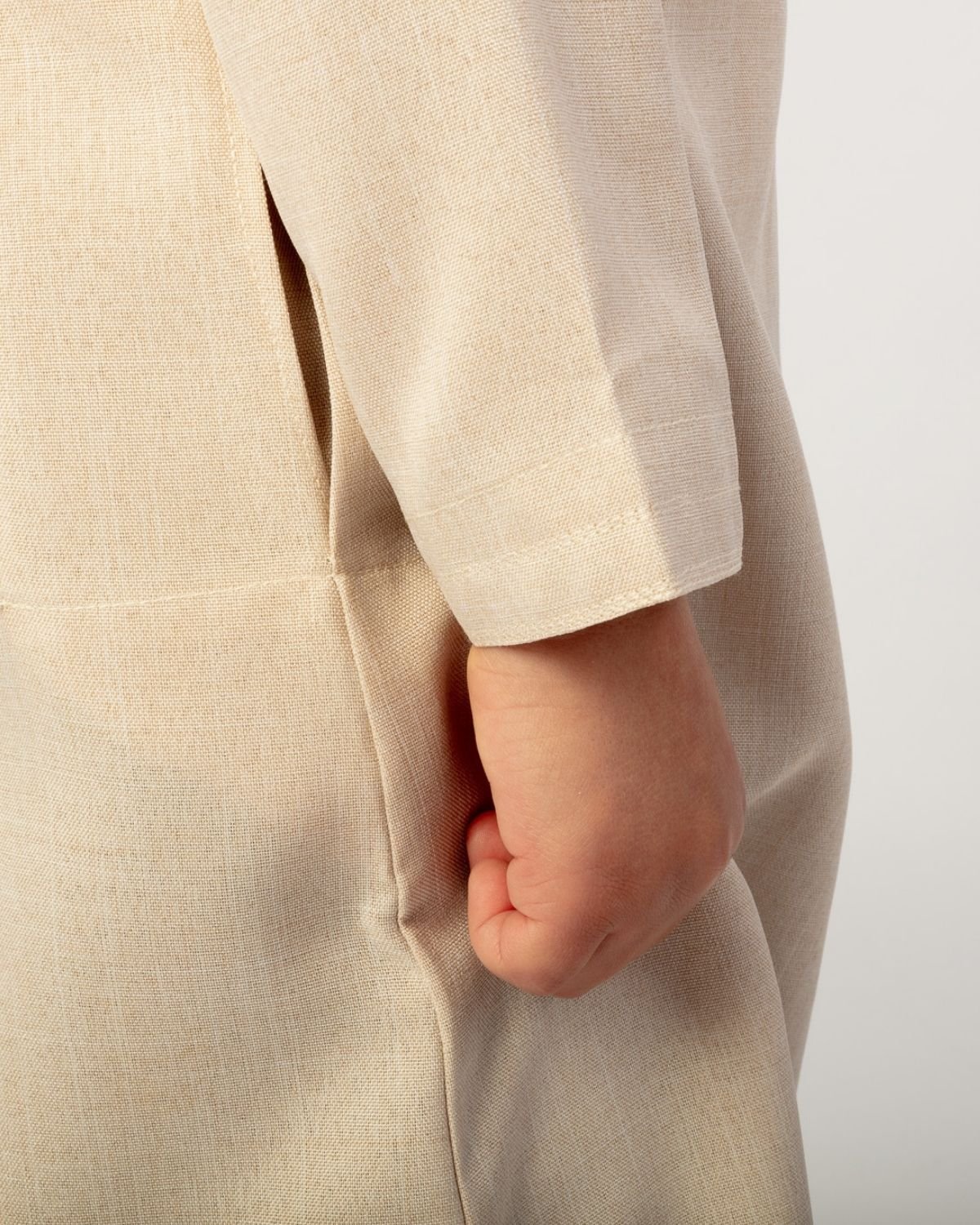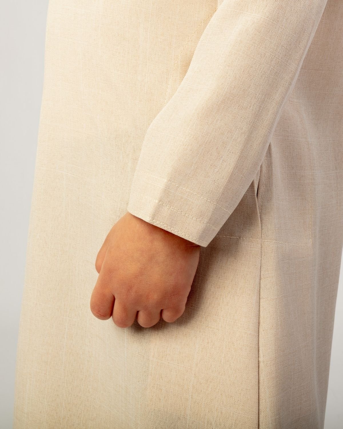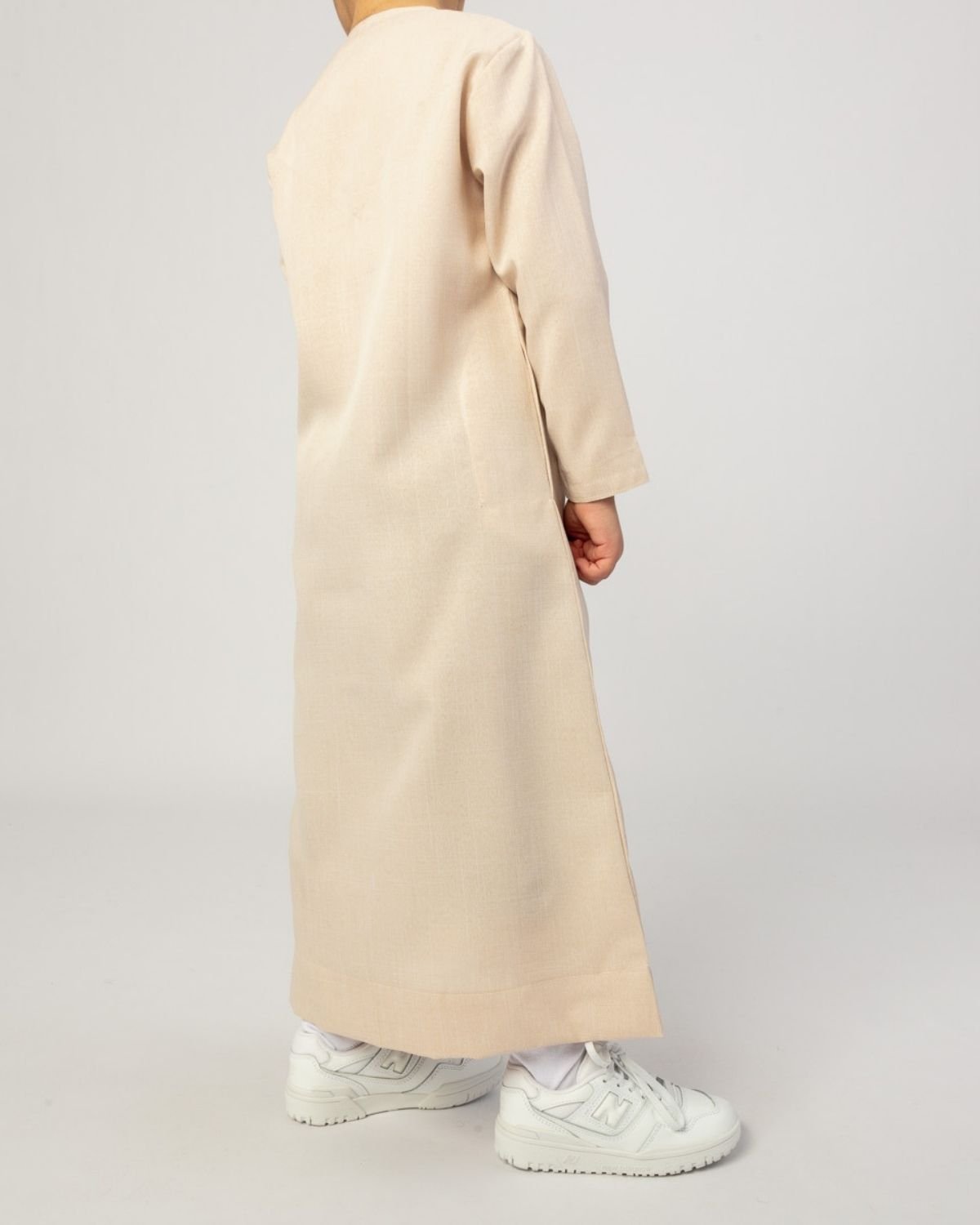 Laat je zoon zich speciaal voelen met onze Elite Qamis voor kinderen. Ontworpen met hetzelfde oog voor detail als de herenversie, zodat hij net als papa kan stralen tijdens Ramadan en andere bijzondere momenten.