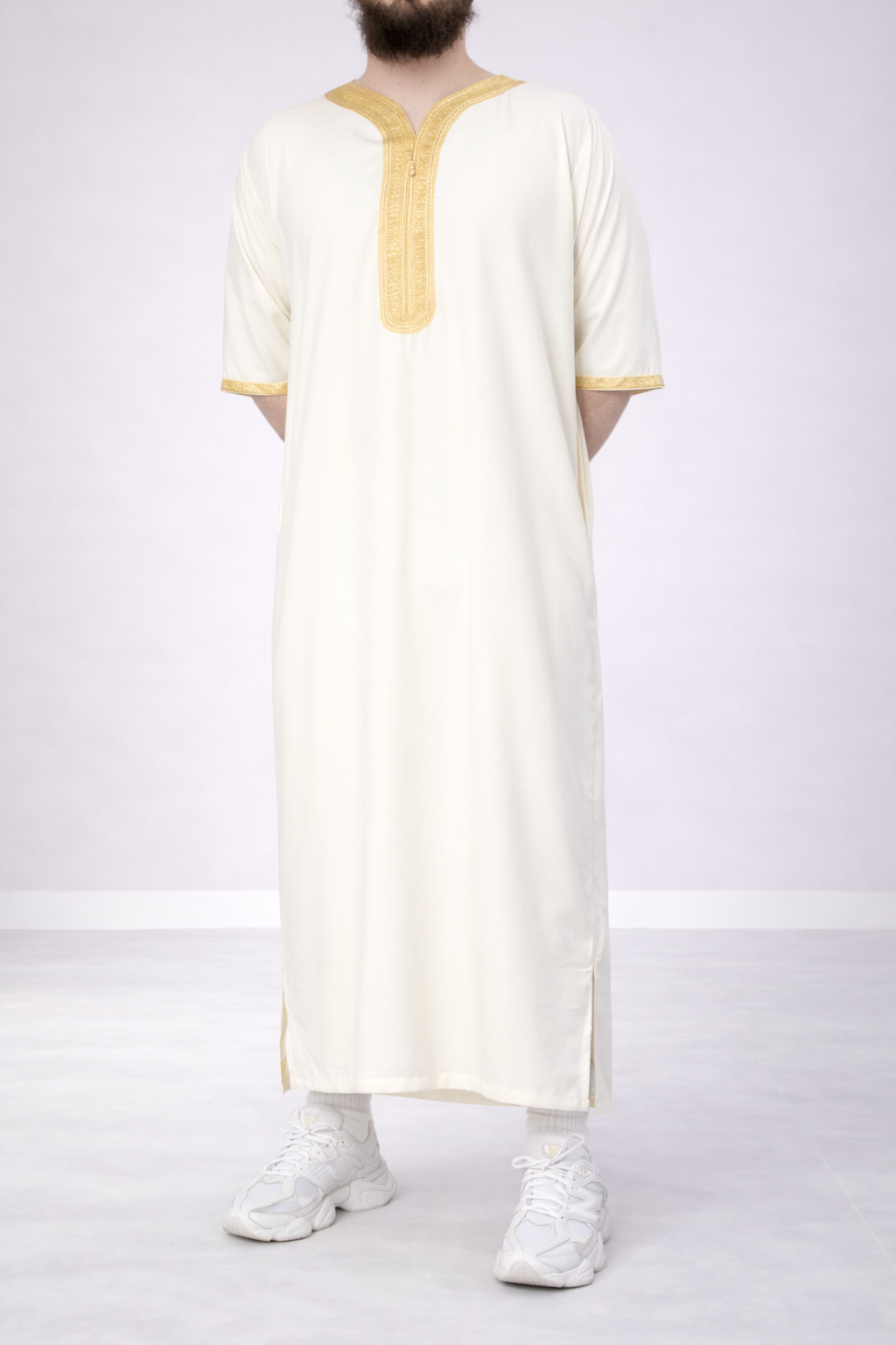 Marokkaanse “Heritage” Kandora White & Gold van Djellaba Mannen