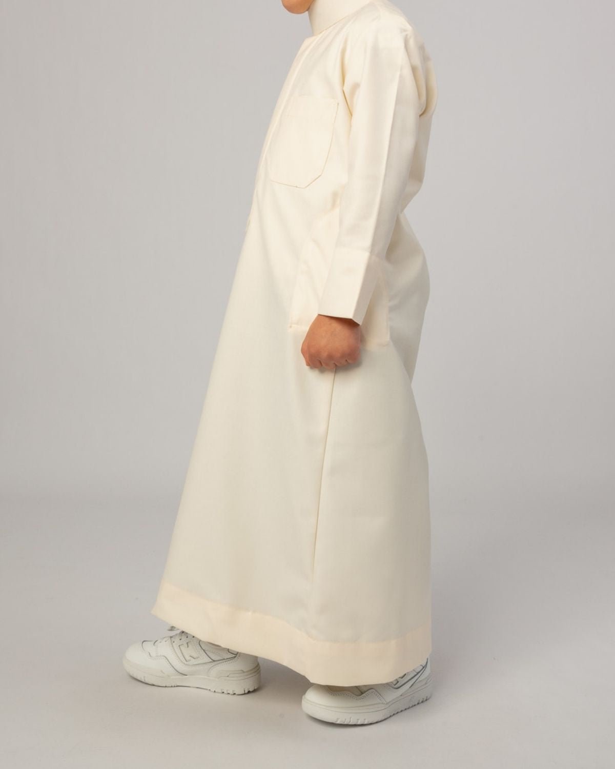 Laat je zoon zich speciaal voelen met onze Elite Qamis voor kinderen. Ontworpen met hetzelfde oog voor detail als de herenversie, zodat hij net als papa kan stralen tijdens Ramadan en andere bijzondere momenten.